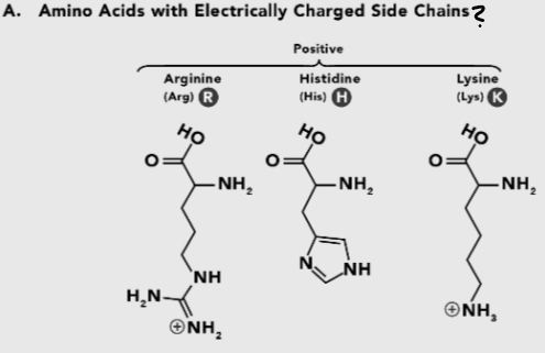 [Structures of Arginine, Histidine, and Lysine are shown]</p>
